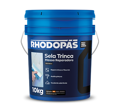 Rhodopás Sela Trinca é uma massa acrílica pronta para uso, indicada para vedar trincas e fissuras em paredes de concreto e alvenaria.